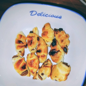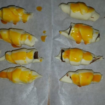 卵黄をぬって焼くと小さなミニクロワッサンの出来上がり😊