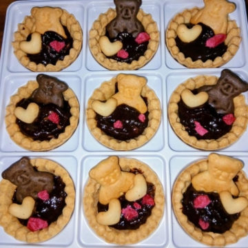 あともう1つはタルト生地にチョコを入れて、ラッピングしました